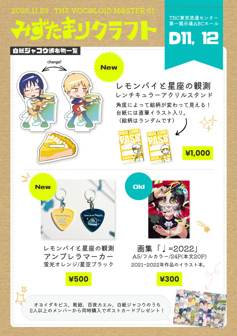 【随時更新】ボカロオンリーイベント「ボーマス61」出展【D11.12】